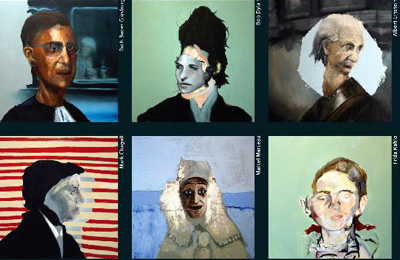 With varying degrees of abstraction, the portraits reveal mystery, emotion, shadow, form, essence and masked reality. Lahav, employing a playful wit and analytical insight, gathers images from contemporary media sources and selects them for their iconic quality. The uniform size, composition, and subject of the paintings are a response to Warhol’s Ten Portraits of Jews of the Twentieth Century (1980) or Gerhard Richter’s 48 Portraits (1972).