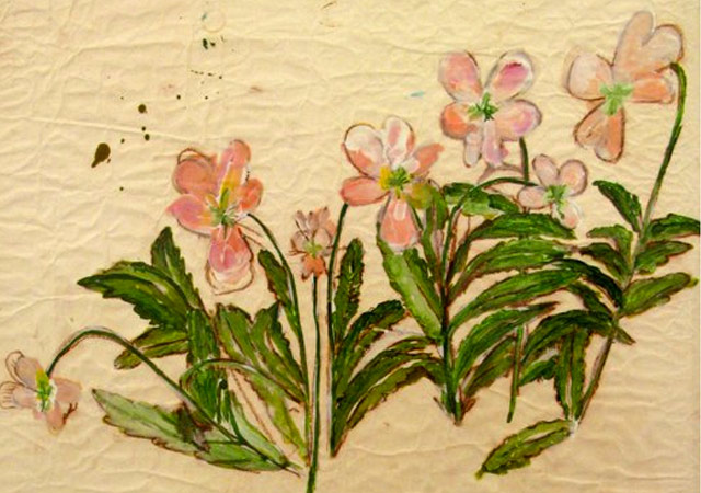 Juarez began to use peat moss as a medium for preparing his canvases, which he then covered with rice paper, creating an earthy backdrop for his paintings of flowers and plants. The resulting images have a kind of beauty that almost literally grows from the earth. He utilizes natural materials – rice paper and a dusting of peat moss, etc., to give the work added texture, strength, and beauty that brings a touch of serenity.