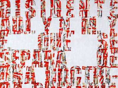 His other way of looking at something turns out to be spectacular, according to gallery owner-director Virginia Miller. “Although these are paintings of words, Vincench’s extraordinary technique transforms them into gorgeous semi-abstractions,” she said.