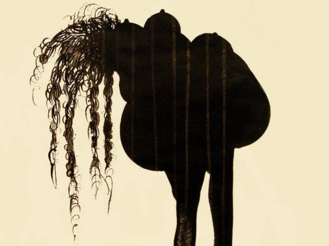 Shoshanna Weinberger identifies with beauty both physiologically and politically, making personal connections of awkwardness as a female growing-up in a society obsessed with attaining beauty result in imagery that depicts this as distorted excess. Imagery result in malformed and decapitated bodies, with cornrow braids, un-kept locks and pigtails, mutations of multiple-mouths, breasts and buttocks, create a sense of familiarity, confusion, humor and tension. The drawings allude to the psychology of coexisting in human and animal form as well as forms grotesque and sexualized. Confronting how women and men survey themselves and each other within their own sex.