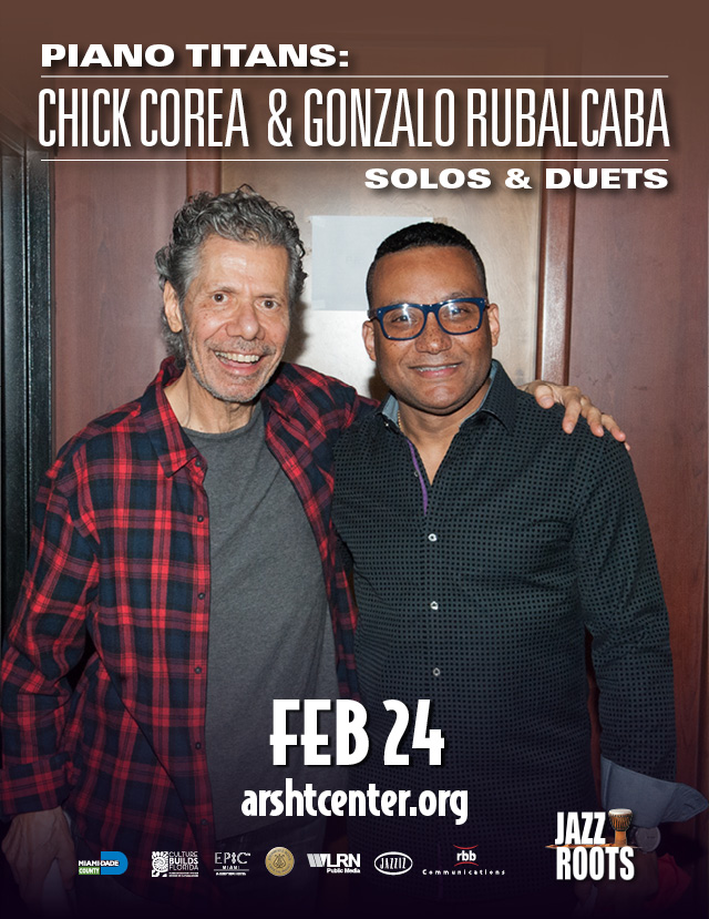 Chick Corea and Gonzalo Rubalcaba, two piano titans of jazz, reunite for a spectacular one-night concert at the Arsht Center!