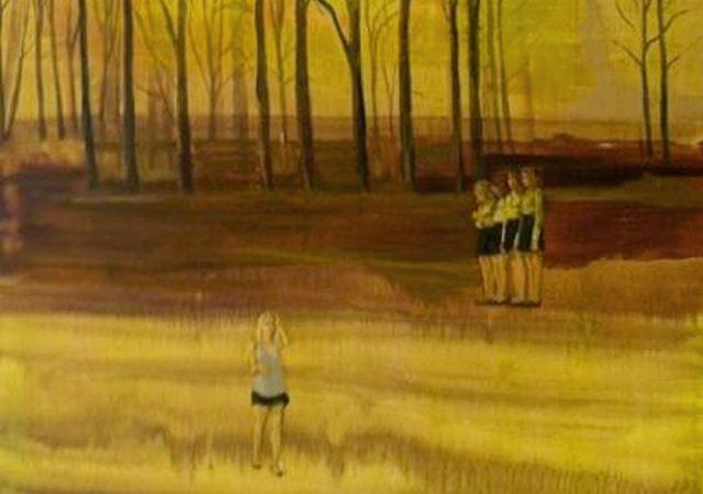 Vera Iliatova weaves the epistemic body into the half-light of her canvas. It is a loose narrative fabric that holds her oils while breathing between time that is neither dawn nor dusk, figures that are neither children nor adults, and performance that is neither play nor ritual. Iliatova’s eyelet canvas sees the contradiction of privacy afforded by public space, the curious ubiquity of urban parks where girls gather and separate like the perpetual coming of age of an autopoietic organism. Iliatova calcifies the isomorphism between girl and tree, limbs and branches. She enunciates valence in embodiment and locative space like gems set into a bracelet. Iliatova’s figures are both rarified and machinic. They are of the spontaneous earth and the curated plane. What came first, the jewelry or the wrist? The embrace or the body? The sensation or the touch? Exposed to natural elements and the artificial inference of the free-ranging city, Iliatova’s figures open to the only constant of dynamism. They are one another’s zeitgeists in T. J. Clark’s terrain vague. They are nuclear in their simple affects of creation and destruction.