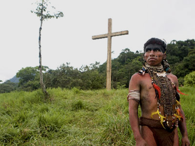 But “Tambien la Lluvia (Even the Rain) does much more than compare historic events. It transcends the detail and delves into something much deeper and more universal. Deep down it’s a story about loyalty, camaraderie, and empathy. It’s essentially a tribute to friendship. Costa, a cynical film producer, and Sebastian, a young and idealistic director, work together on an ambitious project they’re planning to shoot in Bolivia, a film about the arrival of the Spanish in the Americas that highlights their brutality and the courage of several members of the Catholic Church who fought with words against the colonizers’ swords and chains. Father Bartolome de las Casas and Father Antonio Montesinos were the first radical voices of conscience against an Empire. But Costa and Sebastian can’t imagine that in Bolivia, the location they’ve chosen to represent Santo Domingo in their film, an explosive challenge awaits them. The Bolivian Water War breaks out (April, 2000), shattering Sebastian’s convictions and Costa’s detachment and forcing them to make an emotional journey in opposite directions.