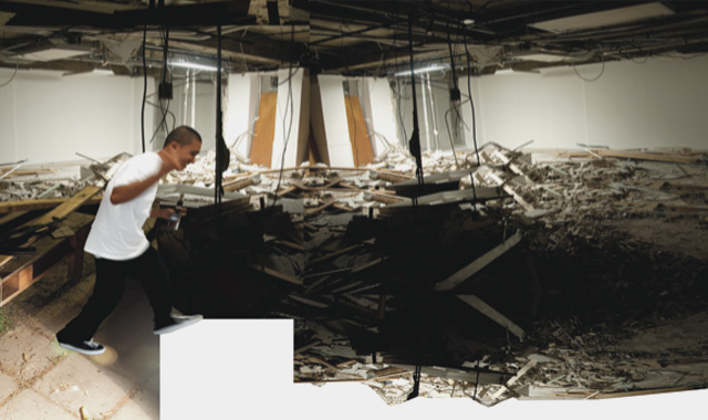 Vasquez’s new body of work marks an exciting expansion in medium and execution. In an effort to more directly integrate his photographs – a retrospective of his career as an artist – Michael revisits, resizes, and reassembles his images to fashion a large-scale, panoramic collage that narrates a gang’s convergence through friendships and the erection of forts within wrecked construction sites, which allude to the idea of broken homes. In order to address the 3-dimensional space of the Fredric Snitzer Gallery, Vasquez collages the elements into an aggressive relief photo sculpture, the extensive scale of which confronts and unnerves even the most high-end viewer.