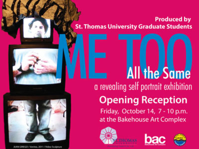 St. Thomas University event management students offer a rare twist in art exhibition. ME TOO offers an alliance between talented graduate students, selected artists from the Bakehouse Art Complex (BAC), coupled with the expertise of Miami World Cinema Center. The combined efforts of each of these organizations present a creative collaboration that offers an insight to both the artist and the audience. Students are involved in every aspect of the event from marketing and management to design and curating.