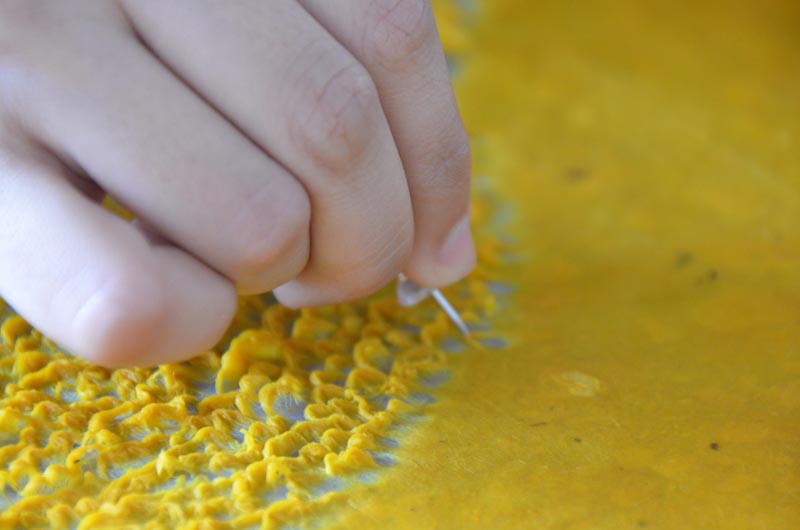 Exhibition Defiant by Neha Vedpathak presents the artist’s recent work. Different materials such as acrylic, polymer, plexiglass, handmade paper, mirror and organic substances like turmeric, flowers, leaves and clay comprise Nera’s body of work. Her work is minimalist and simple where using different techniques she tries to reinvent herself while using painting as a means of expression and interaction to reach spirituality. Originally from India, Nera currently resides in Chicago, IL.
