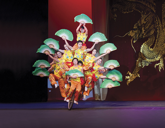 Since their Western debut in 1986, THE PEKING ACROBATS® have redefined audience perceptions of Chinese acrobatics. They perform daring maneuvers atop a precarious pagoda of chairs; they are experts at trick-cycling, precision tumbling, somersaulting, and gymnastics. They defy gravity with amazing displays of contortion, flexibility, and control. They push the envelope of human possibility with astonishing juggling dexterity and incredible balancing feats, showcasing tremendous skill and ability. They are masters of agility and grace. Often accompanied by live musicians skillfully playing traditional Chinese instruments and high-tech special effects that coalesce with the music and awe-inspiring feats to create an exuberant entertainment event featuring all the excitement and festive pageantry of a Chinese Carnival!