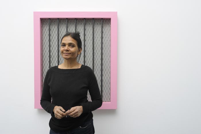 Gowda began as a figurative painter and studied in London, where she received a master’s degree in painting at the Royal College of Art. She then returned to her native Bangalore, after which her practice radically changed in response to the fundamentalist Hindu violence that resulted in the Mumbai riots of 1992.
