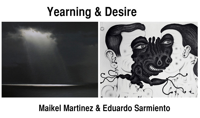 Under the provocative title “Yearning & Desire,” Jorge M. Sorí Fine Art in Coral Gables is opening this April 5th a major exhibition of recent works on paper by two of Miami’s rising stars in the visual arts.  Maikel Martínez (b. 1977, Pinar del Río) and Eduardo Sarmiento (b. 1980, Cienfuegos) carry forward important traditions in the art of their native Cuba.       The exhibition, curated by Ricardo Pau-Llosa who also wrote the essay in the catalogue, counterpoints the way in which Yearning and Desire shape our sense of identity, space, and the past, as well as the forces which mediate the presence of others in our lives.
