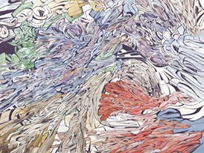 Emilio Perez, in the middle of something, 2007: A New York based alumnus of Miami’s New World School of the Arts, Emilio Perez creates vibrant, dynamic paintings that hover between abstraction and representation. He cuts and peels layers of latex and paint to produce sharp lines that lend his paintings the graphic strength most often associated with comic books or graffiti, without providing specific references to recognizable objects. in the middle of something is a Museum purchase with funds from MAM’s Collectors Council.