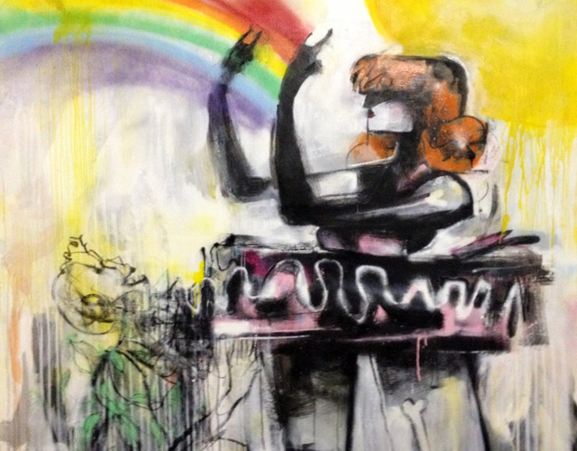 Lister is most interested in breaking down the ideals of highbrow and lowbrow, calling graffiti art “the final frontier in true artistic integrity.” He says, “I’m disguising myself as a fine artist until the revolution is fully here.” This notion is demonstrated in his recent series of ballerina paintings, which will be on display during “Never Odd Or Even.” These fluid motion paintings are at once painterly and delicate, while also high energy, confrontational, and bold.