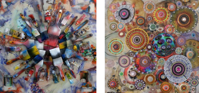 His works comprise a visual feast of intriguing compositions running the gamut from small, striking, 12” X 12” assemblages to breathtaking wall-to-wall installations structured piece by piece in dazzling colors. All the works on exhibition are representative of the art the prolific Swedroe has created since 2006, after a 33 year hiatus during which he devoted his time exclusively to his architecture business.